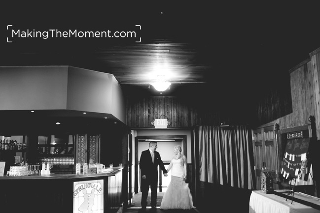 Their wedding reception was at Springvale Ballroom, a reception venue in North Olmsted. Ashley had put so much work into the details of her wedding reception at Springvale Ballroom. Every custom feature was themed and perfect for her and Adam. Adam had even spent time hand cutting the tree stump plates they used for table decorations and a signing board.